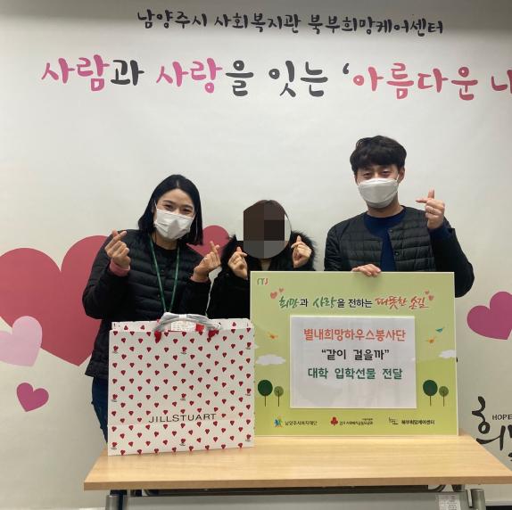 북부희망케어센터 김희정 센터장은 “뜻 깊은 사업을 진행할 수 있도록 도움 주신 별내희망하우스봉사단에 감사드린다.”며, “지난해 수험생활을 했던 2002년생은 학창시절 중 3가지의 전염병을 겪은 유일한 세대이다. 유난히 많은 고생을 한 수험생들에게 뜻 깊은 선물을 할 수 있어 매우 기쁘고, 이번 선물이 학생들이 대학에서 새 출발을 하는 데 도움이 되었으면 좋겠다.”고 밝혔다.