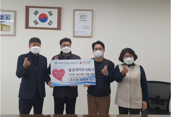 [KNT한국뉴스타임] 지난 2일 ㈜동성제약이 남양주시 관내 취약계층을 지원하기 위해 1,100만원 상당의 유산균 300상자를 남양주시복지재단에 기부했다.