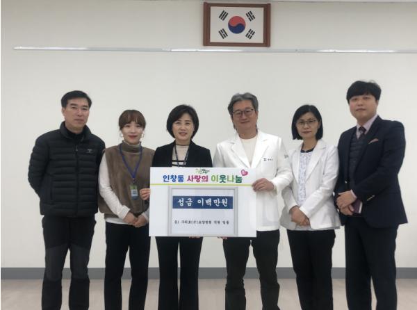 양희준 구리효(孝)요양병원 원장은 “평소 직원들이 자발적으로 매월 성금을 모아왔으며, 직원들의 정성에 병원도 함께 동참해 왔다.”고 말하며, “앞으로도 병원 직원과 함께 지속적으로 사랑의 성금을 모아 어려운 이웃과 함께 더불어 살아가는 인창동 만들기에 적극 동참하겠다.”고 밝혔다.