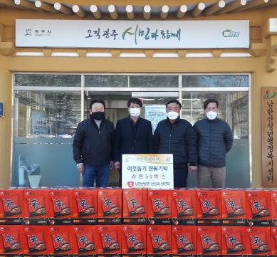 이에 대해 최영수 남한산성면장은 “어려운 시기에도 불구하고 매년 지역사회를 위해 물심양면으로 후원해 주셔서 깊이 감사드린다”며 “후원한 라면은 관내 저소득층에게 잘 전해드리겠다”고 화답했다.