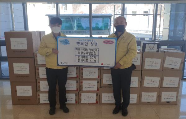 한국수력원자력(주) 청평수력발전소는 지난 2월 4일 이웃돕기 물품으로 전기요 전기매트 30개, 한과세트 50개, 라면 40박스를 기탁하였다.