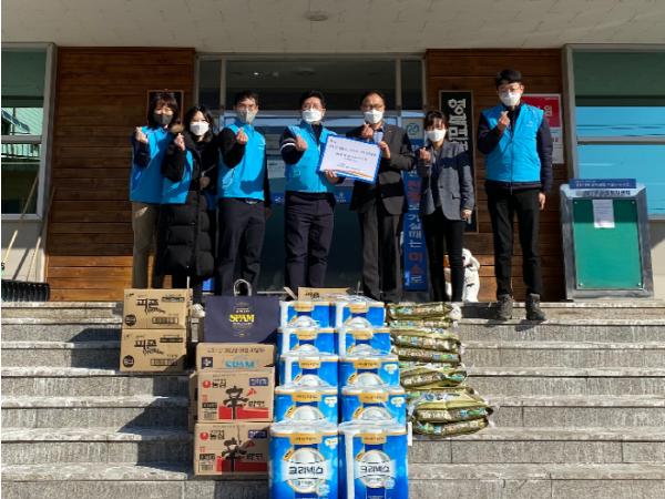 [KNT한국뉴스타임] K-water 연천포천권지사 물사랑나눔단은 지난 4일 설 명절을 맞아 직원들의 정성을 모은 식료품 세트를 영북면행정복지센터에 기탁했다.