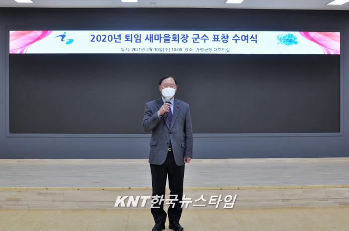 김성기 가평군수는 "재임하는 동안 헌신봉사 해 주신 회장님들에게 감사 드린다. 새마을회장들은 마을의 힘든일을 앞장서서 활동 하시는 분들이기에 누구보다도 감사드린다. 앞으로도 마을과 지역발전을 위해 최선을 다 해 주시길 부탁드린다"라고 인사말을 전했다.
