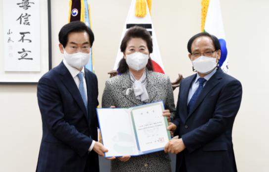 이영애 (전)신한대학교 교수를 비상임 사외이사로 선임하였다고 밝혔다. 2021. 2. 10(수) 15:00 안병용 의정부시장으로부터 임명장을 수여받았으며, 공단 이사회의 구성원으로서 공단의 주요 경영정책을 심의?의결하는 역할을 수행하게 된다.