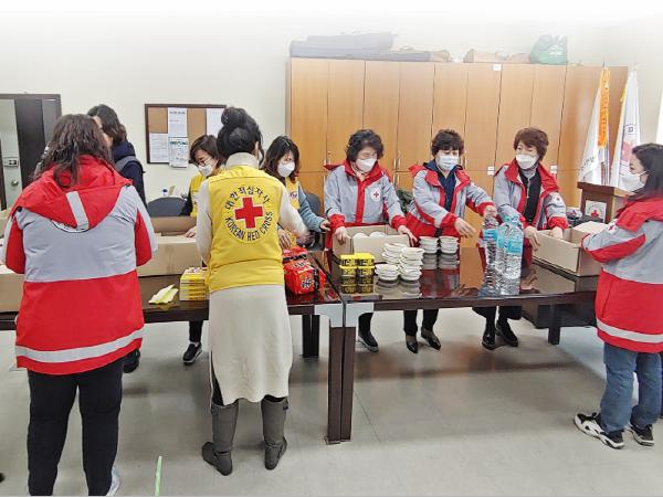 [KNT한국뉴스타임] 대한적십자사봉사회 구리지구협의회(회장 함정현)는 지난 6일 관내 코로나19에 따른 자가격리자 5명에게 긴급 구호물품을 전달했다.