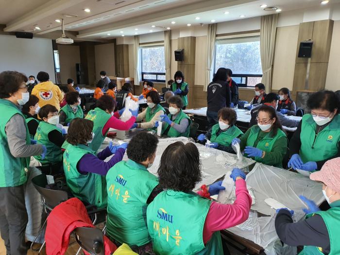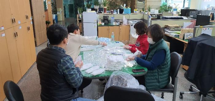 이를 위해 각 읍면동에서는 지난 7일부터 묶음포장되어있는 마스크를 세대당 5매씩 나누기 위해 발 벗고 나섰다.