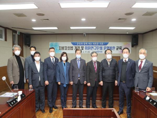 제윤의정 지방의정연구소장 최민수 교수를 초청한 이번 교육은 32년 만에 개정된 지방자치법의 전부개정 핵심 사항과 그에 따른 변화 및 기대효과, 의원연구단체의 성공적 운영방안 등 내실 있는 자치입법 교육을 실시했다.
