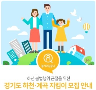 '하천·계곡 지킴이'는 관내 하천을 순찰하며 하천변 쓰레기 처리, 수목 제거 등 하천 환경정화 활동, 하천 구역에서 발생하는 불법행위 근절을 위한 감시활동 등 하천관리원의 업무 보조 역할을 맡게 되는데 활동기간은 올해 3월부터 10월까지 8개월이며 보수는 경기도 생활임금(시급 1만540원)이 적용될 예정이다.
