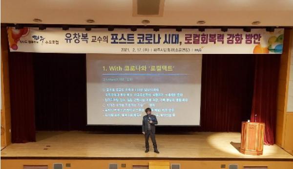 [KNT한국뉴스타임] 파주시는 지난 17일 오후 3시 시민회관 소공연장에서 미래자치분권연구소 유창복 소장을 초청해 ‘포스트 코로나 시대, 로컬회복력 강화 방안’이라는 주제로 2월 수요포럼을 개최했다.
