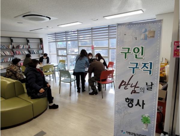 [KNT한국뉴스타임] 가평군은 가평관내 구인·구직자들의 취업지원 사업의 일환으로 각 읍ㆍ면에 일자리센터 취업상담사가 직접 찾아가 구인ㆍ구직자의 요구사항을 분석하고 맞춤형 취업지원 서비스를 제공하는 기회의 장을 마련하고자 지난 17일 북면 행정복지센터에서‘찾아가는 일자리 이동상담소’행사를 진행했다.