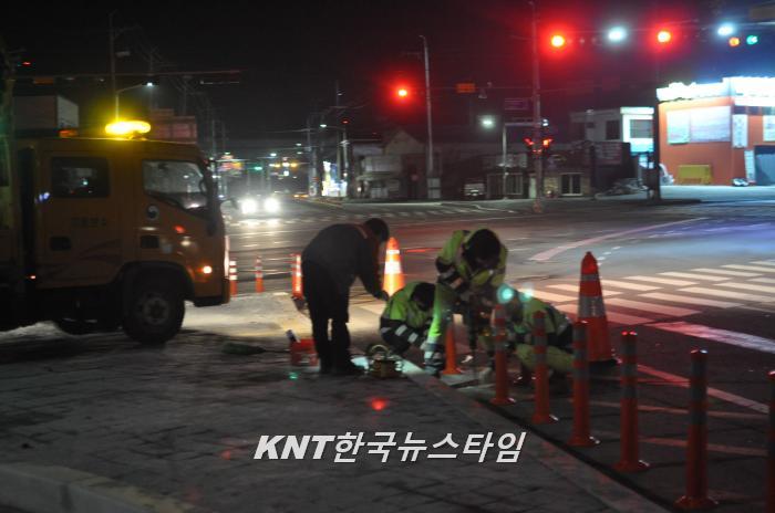 [한국뉴스타임=명기자] 경기도 가평군 가평읍 5거리 교차로 교통섬이 운전자들의 교통사고 위험에 노출 되었다는 언론보도에 국토교통부 의정부국토관리사무소가 도로 분리봉 설치 긴급공사를 하였다.