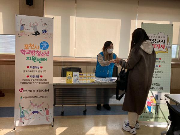 [KNT한국뉴스타임] 포천시학교밖청소년지원센터는 지난 15일부터 19일까지 포천교육지원청에서 학교 밖 청소년들과 보호자를 대상으로 제1회 검정고시 접수장 아웃리치를 진행했다.