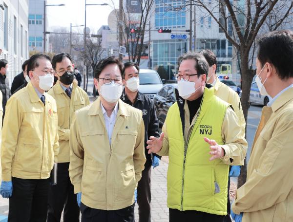 조광한 남양주시장은 박범계 장관과 함께 집단감염이 발생한 플라스틱 제조업체 인근 현장을 둘러본 후 산단 외국인 근로자 현황과 그간 확진자 발생추이 등을 보고하고 지역 내 확산을 막기 위한 정부차원의 신속한 협조를 요청했다.