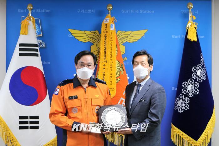 [한국뉴스타임=명기자] 19일 가평군 (김성기 군수)은 김전수 구리소방서장을 명예군민으로 선정하고 구리소방서를 방문하여 명예군민증서 수여식을 가졌다.
