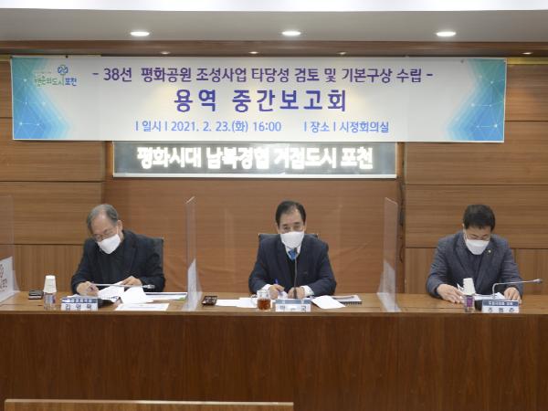 [KNT한국뉴스타임] 포천시는 지난 23일 시청 시정회의실에서 38선 평화공원 조성사업 타당성 검토 및 기본구상 용역 중간보고회를 개최했다.