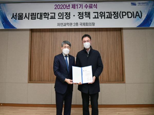 [KNT한국뉴스타임] 서울특별시의회 양민규 의원이 22일 서울시립대학교 자연과학관 2층 국제회의장에서 진행된 의정?정책 고위과정 1기 시상식에서 공로부문 총장상을 수상했다.