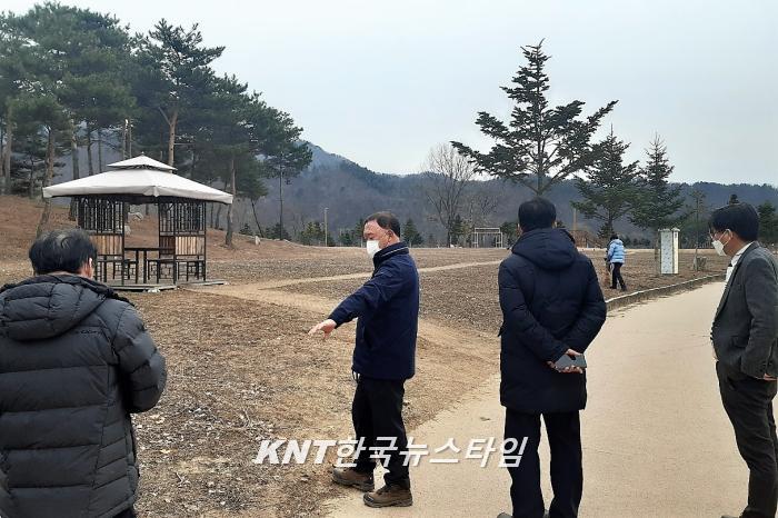 김군수는 약 1시간여동안 자라섬 일대를 도보로 이동하며 지난 겨울 유실된 시설물과 꽃 동산 재조성 상황을 점검했다.