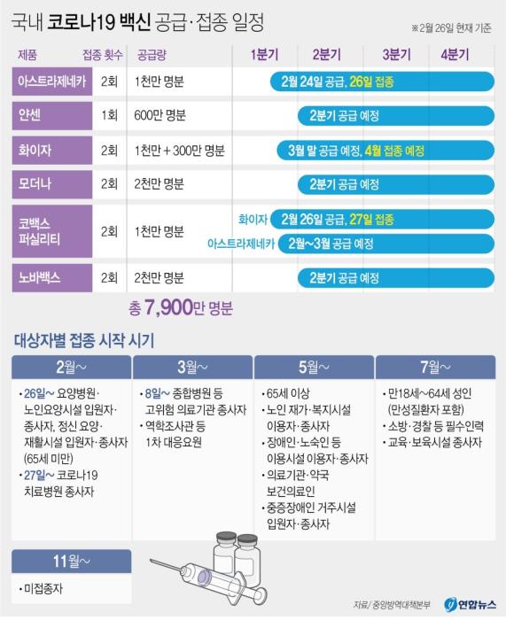 한편 정부는 아스트라제네카 측과 1천만명분의 백신 구매계약을 체결했으며, 이 가운데 초도물량 78만5천명분(157만회분)이 지난 24일부터 순차적으로 풀리기 시작했다.