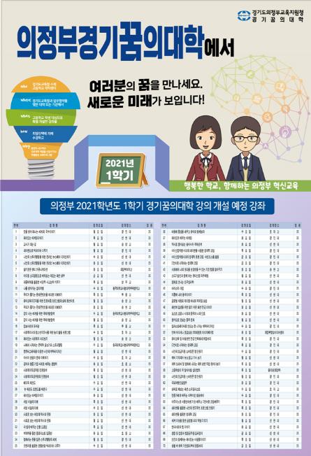 [KNT한국뉴스타임] 경기도의정부교육지원청은 학생의 진로지원을 위해 3월 8일부터 3월 26일까지 3차례에 걸쳐서 2021학년도 경기꿈의대학 1학기 수강신청을 받는다고 밝혔다.
