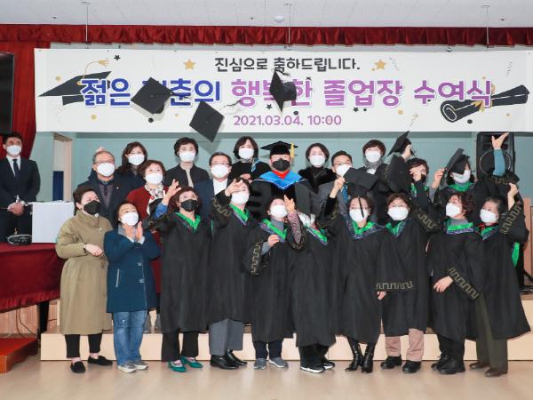또한 정귀석 이사장은 “그동안의 고생은 뒤로 하고 밝고 아름다운 세상을 즐기면서 맘껏 살아가시길 바란다.”라며 “졸업하고 난 뒤 상급학교 과정에도 진학해 더 넓고 깊은 세상과 만나셨으면 좋겠다.”라고 졸업생들을 축하했다.