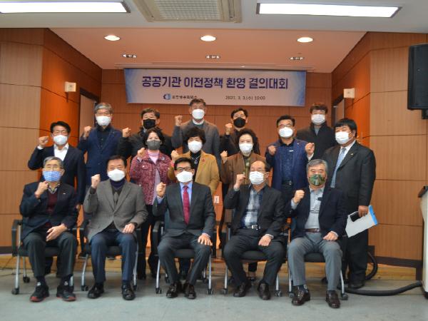 포천상공회의소(회장 이민형)는 지난 3일에 코로나19로 인한 국가 재난적 상황이정부의 백신 접종 및 전 시민적 사회적 거리두기 적극적 협조로 사회적·경제적 상황이 나아지려는 환경이 조성될 기미가 보이는 가운데 경기도공공기관 이전 계획이 발표되는 시점을 계기로 기회를 놓치지 않고 기업인 자체적으로 『경기도 공공기관 이전 환영 결의대회』를 4층 대회의실에서 개최하였다.