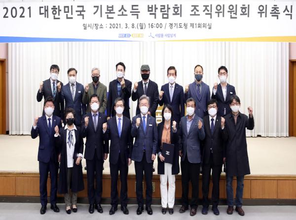 이재명 경기도지사는 8일 경기도청에서 '2021 대한민국 기본소득 박람회 조직위원회’ 위촉식을 개최했다.