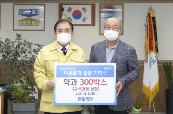 [KNT한국뉴스타임] 포천시는 지난 8일 ㈜청백산업으로부터 마스크 10만 매와 한울제과로부터 약과 300박스를 기탁받았다고 밝혔다.