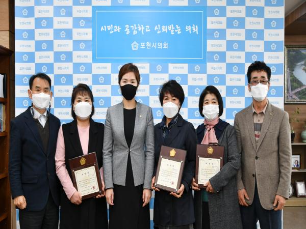 포천시의회(의장 손세화)는 9일 시의회 의장실에서 바람직한 외식문화 조성에 기여한 유공 시민을 대상으로 표창장을 수여했다.