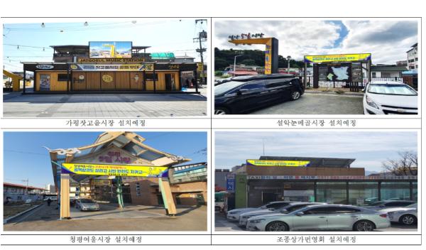 10일 군에 따르면 가평잣고을시장, 청평여울시장, 설악눈메골시장, 조종면상점가 등 4개소에 전통시장 홍보용 LED전자 현수막을 설치하는 등 상권 활성화를 이뤄 나가기로 했다고 밝혔다.