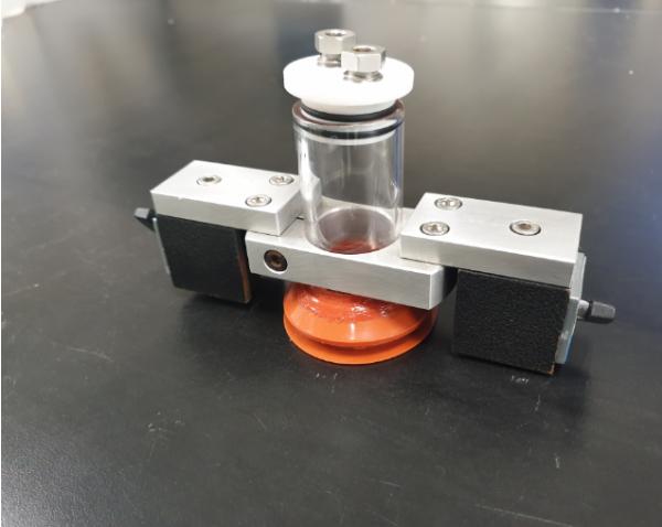 또한, 부식 평가를 위한 전기화학실험(EIS)에 사용되는 전해액이 누수 되지 않도록 장치의 비이커 각도를 조절이 가능하도록 개선해 90도의 수직한 수도관에서도 사용할 수 있도록 고안하였다.