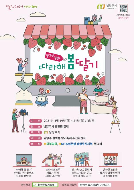 [KNT한국뉴스타임] 남양주시가 오는 19일부터 21일까지 3일 간 유튜브채널(딸기 피크닉 가자GO! tv)을 통해 온라인 딸기축제를 개최한다.