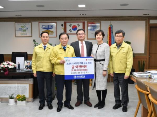 [KNT포천뉴스타임] 을지재단 (회장 박준영)은 지난 12일 코로나19 위기극복 성금으로 후원금(2천만원)을 포천시에 전달했다.