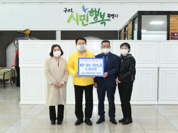 [KNT한국뉴스타임] 구리시는 11일 시청 복지회의실(2층)에서 구리시 지역주택조합 연합회(회장 정옥환)로부터 코로나19 극복 기원을 위한 KF-94 마스크 5,000장을 전달받았다.