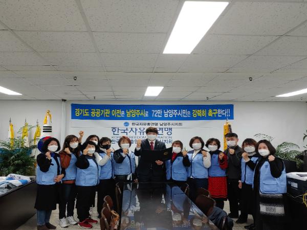 [KNT한국뉴스타임] 자유총연맹 남양주시지회는 지난 15일 자유총연맹 사무실에서 경기도 공공기관의 남양주시 이전을 촉구한다는 내용의 성명을 발표했다.