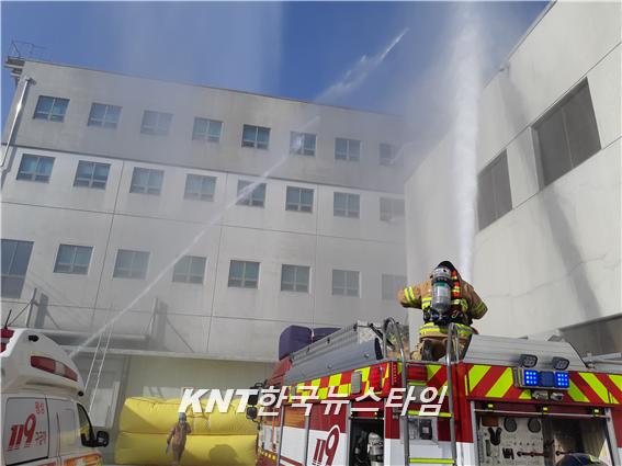 [한국뉴스타임=평택] 평택소방서 (서장 한경복)는 17일 평택시 팽성읍 추팔공단 내 1급 소방대상물인 SPL(주)에서 해당 관계인들이 참석한 가운데 합동소방훈련을 실시했다.
