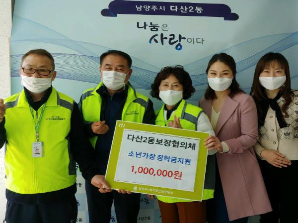[KNT한국뉴스타임] 남양주시 다산2동 지역사회보장협의체는 지난 17일 다산2동에 거주하는 소년가장 현철(가명)군을 지원하기 위해 장학금 100만 원을 남양주시 서부희망케어센터에 전달했다.