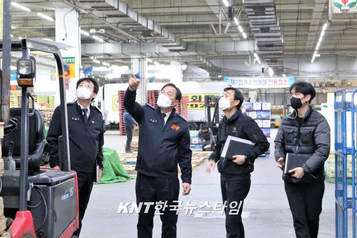 [한국뉴스타임=명기자] 지난 22일 김전수 구리소방서장은 중점관리대상인 구리 농수산물시장을 현장 방문하여 안전 컨설팅을 실시했다.
