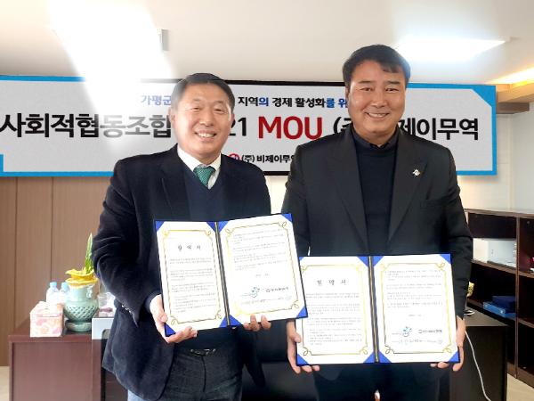 [KNT한국뉴스타임] 예비사회적기업 사회적협동조합공감21은 03월 24일 “가평군 관광 및 농촌경제활성화를 위한 MOU”을 ㈜비제이무역과 체결했다.