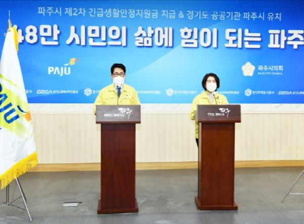 최종환 파주시장과 한양수 파주시의회 의장은 29일 파주시청에서 이 같은 내용을 담아 ‘파주시-파주시의회 공동브리핑’을 진행했다.