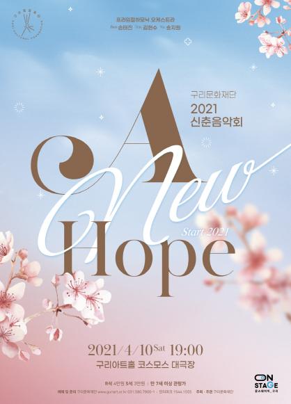 구리문화재단(이사장 안승남)에서 4월 10일 오후 7시 구리아트홀 코스모스 대극장에서 새봄맞이 특별 무대인 2021 신춘음악회 ‘A New Hope’를 마련하여 관객들에게 따뜻한 위로와 희망의 메시지를 전달한다.