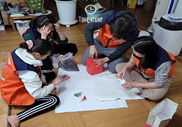 이날 활동에 참여한 푸름이 가족 봉사단은 비대면으로 만나는 어르신들을 위한 손 편지와 함께 재활용이 가능한 페트병 및 스티로폼을 이용해 만든 미니 화분을 어르신들에게 전달했다.