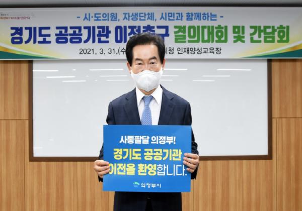 [KNT한국뉴스타임] 의정부시는 3월 31일 경기도 산하기관(경기주택도시공사, 경기신용보증재단, 경기도경제과학진흥원, 경기연구원, 경기복지재단, 경기도 여성가족재단, 경기농수산진흥원) 유치 경쟁이 한창인 가운데 경기도 공공기관 이전촉구 결의대회를 개최했다.