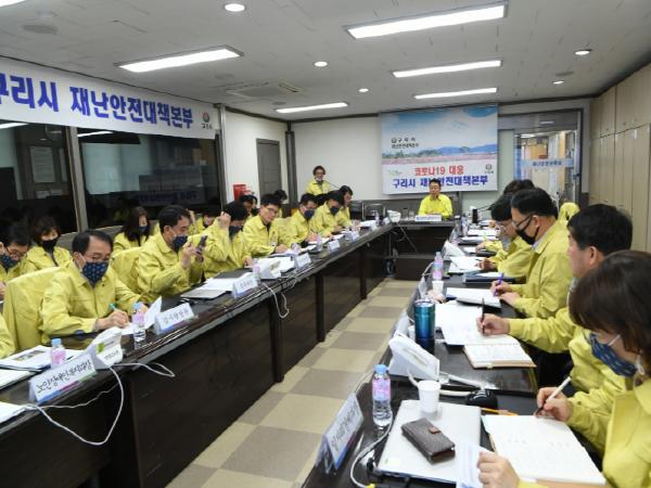 [KNT한국뉴스타임] 안승남 구리시장은 20일 시청 재난종합상황실에서 두 번째 코로나19 확진자 발생에 따른 재난안전대책본부 비상대책회의를 주재하고, 시민들의 불안감 해소와 지역사회 확산차단에 총력을 기울여 줄 것을 당부했다.