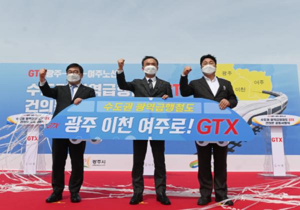 경기 동․남부권 도시인 여주․이천․광주에 수도권광역급행철도인 GTX를 유치하기 위해 힘을 뭉친 이항진 여주시장과 엄태준 이천시장, 신동헌 광주시장은 세 도시가 GTX로 연결돼야 하는 당위성을 환영사를 통해 전했다.