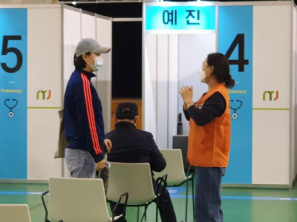 자원봉사자들은 백신 접종 대상자들의 예방접종 예진표 작성을 돕고, 접종 후 예후관찰 및 퇴실까지 원활하게 접종이 이루어질 수 있도록 다양한 활동을 진행한다.