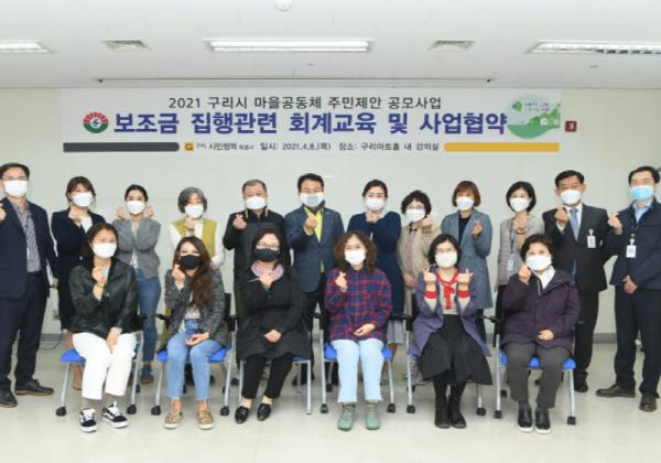 [KNT한국뉴스타임] 구리시는 8일 구리아트홀에서 2021년 마을공동체 주민 제안 공모사업에 선정된 22개 공동체와 업무협약을 체결하고 어렵고 복잡한 보조금 집행의 이해를 돕도록 회계 교육도 함께 진행했다.