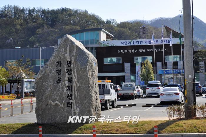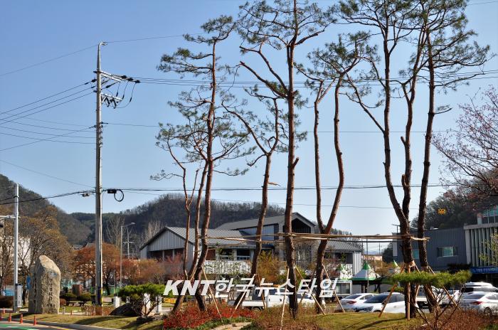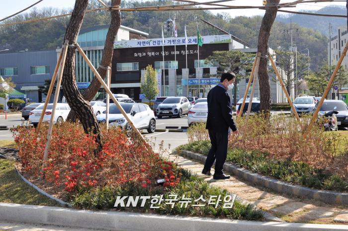 [한국뉴스타임=명기자] 가평읍 행정복지센터(읍장 장동선) 입구 표지석과 소나무 조경목 조성공사가 완공되어 새단장 되었다.