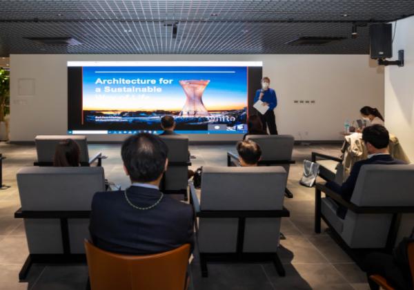 이날 워크숍에서 세계 최초로 쓰레기 자동 집하 시스템을 개발한 환경 설비 공사 업체 엔백과 환경 설계 ․ 도시 디자인 업체 화이트 아키텍처는 ‘지속 가능한 도시 개발’에 대해 발표를 진행했다.