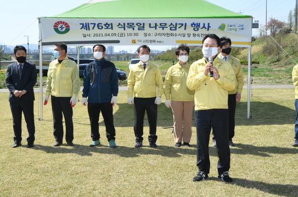 [KNT한국뉴스타임] 구리시는 지난 9일 구리 왕숙천 변에서‘제76회 식목일’기념식 행사와 함께 구리시 시화인 철쭉 8,000여 그루를 식재하며 아름답고 건강한 도시 숲 만들기에 나섰다.