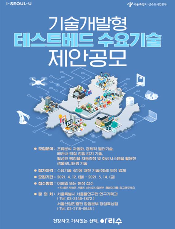 시는 상수도 현안문제 해결을 위해 서울산업진흥원과 함께 2021년 기술개발형 테스트베드를 시행하고 수질관련 과제 4건을 공모한다고 12일 밝혔다.